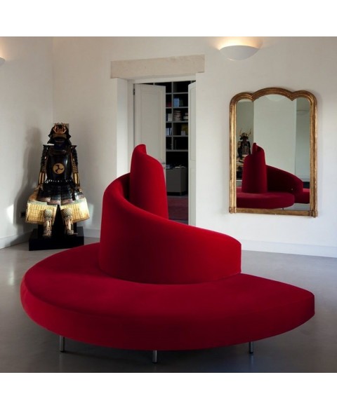 Tatlin fue diseñado por Cananzi e Semprini para Edra, quien crearon un sofisticado sofá en forma de espiral que se puede insertar en elegantes salas de estar, así como en áreas públicas, de hecho es perfecto para la decoración de salas de espera, museos, galerías de arte y hoteles. La base está hecha de madera contrachapada, los pies están en metal y la espiral está hecha de acero moldeado y forjado. El asiento está lleno de una espuma de poliuretano y el revestimiento está disponible en terciopelo rojo o negro. El revestimiento de terciopelo NO es removible.